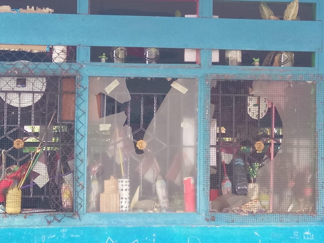 “Kami lihat semua kerusakan hanya pada jendela saja, ada 3 ruang kelas dan 1 ruang Perpustakaan. Di dalam ruangan, ditemukan sejumlah batu yang digunakan untuk melempar kaca jendela itu. dan tak ada barang lain yang hilang,” tuturnya.