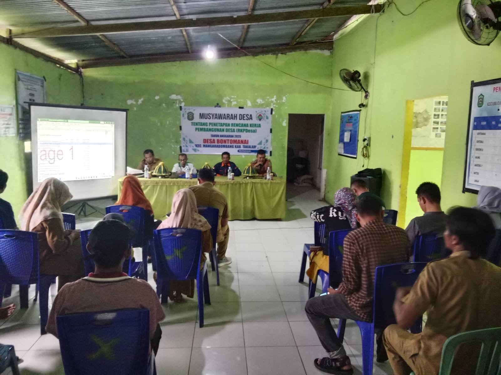 Kegiatan Musyawarah RKP Desa T.A 2025 tersebut berlangsung di Ruang pertemuan kantor Desa Bontomanai Kecamatan Mangarabombang Kabupaten Takalar.