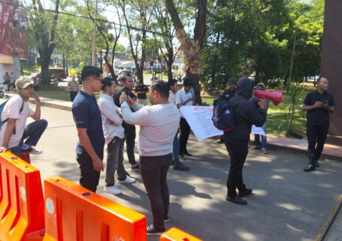 Aksi Unjuk Rasa Didepan Mapolda Sulsel Terkait Kasus Pencurian Kabel RS Pratama Bonerate Kepulaan Selayar