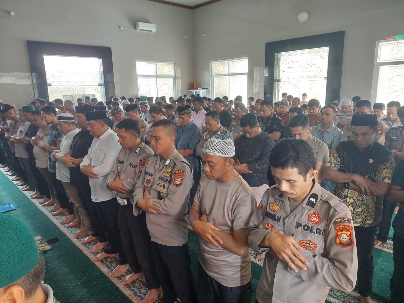 Kegiatan ini dihadiri oleh Wakapolres Gowa KOMPOL Gani, S.H., M.H., para Pejabat Utama Polres Gowa, serta seluruh personel. Suasana haru menyelimuti masjid saat seluruh peserta menundukkan kepala dalam doa, menggambarkan kepedulian mendalam Polres Gowa terhadap saudara sebangsa yang sedang mengalami musibah.