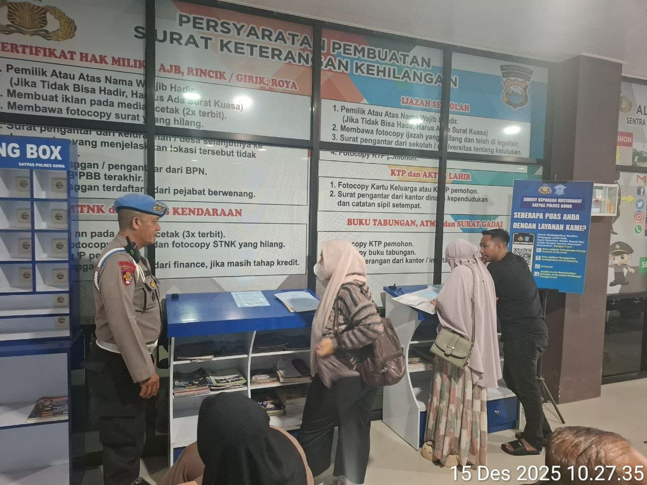 GOWA | FAJARINDONESIANEWS.ID-Komitmen Polres Gowa dalam memberikan pelayanan terbaik kepada masyarakat terus diwujudkan melalui langkah nyata. Salah satunya melalui kegiatan rutin pengawasan dan monitoring yang dilaksanakan oleh personel Seksi Profesi dan Pengamanan (Sipropam) Polres Gowa terhadap unit-unit pelayanan publik, Selasa (16/12/2025).