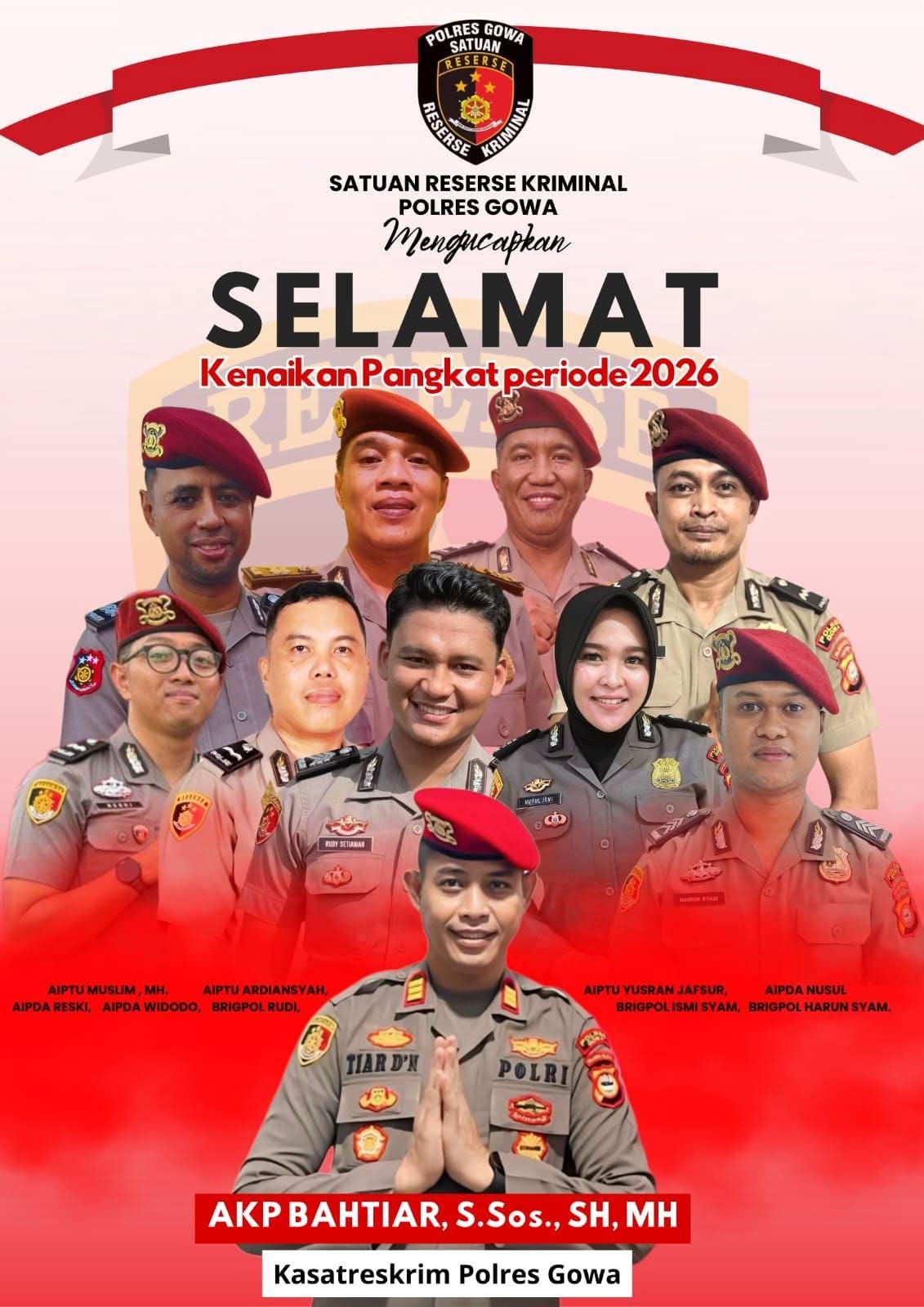 Gowa | Fajarindonesianews.id-Sebanyak 96 personel Polres Gowa menerima kenaikan pangkat setingkat lebih tinggi dalam upacara korps rapor yang berlangsung khidmat di Lapangan Griya Bhayangkara Polres Gowa, Rabu (31/12/2025) Siang.