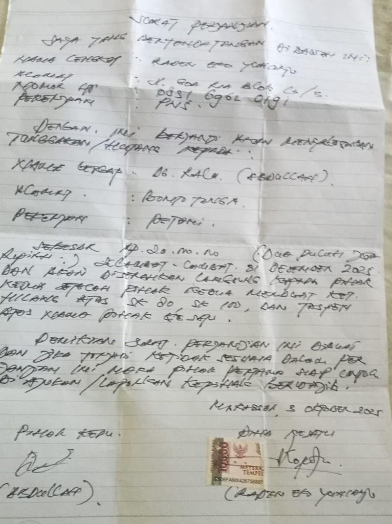 Baru pada tanggal 3 Oktober 2026, Pak Eko akhirnya berhasil ditemukan dan setelah beberapa pembicaraan, dia bersedia untuk memperbarui surat pernyataan terkait pembayaran utang tersebut. Namun, hingga saat ini—hampir dua bulan sejak surat pernyataan baru ditandatangani—tidak ada satu pun tanda keseriusan dari pelaku untuk memenuhi kewajiban finansialnya. Seolah-olah kata etika dan kejujuran sama sekali tidak ada dalam prinsip hidupnya!