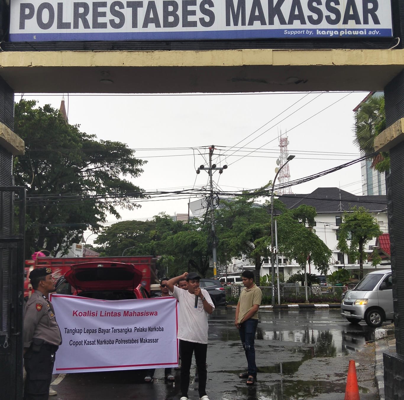Dalam aksinya, massa mahasiswa menyampaikan bahwa sebelumnya aparat kepolisian telah mengamankan tiga orang terduga pelaku yakni AL, AG, dan WI di wilayah Jalan Tidung, Kota Makassar, dengan barang bukti satu paket liquid sintetis. Namun berdasarkan informasi yang beredar di masyarakat, ketiga orang tersebut diduga dilepaskan setelah adanya permintaan pembayaran sejumlah uang oleh oknum aparat kepolisian.