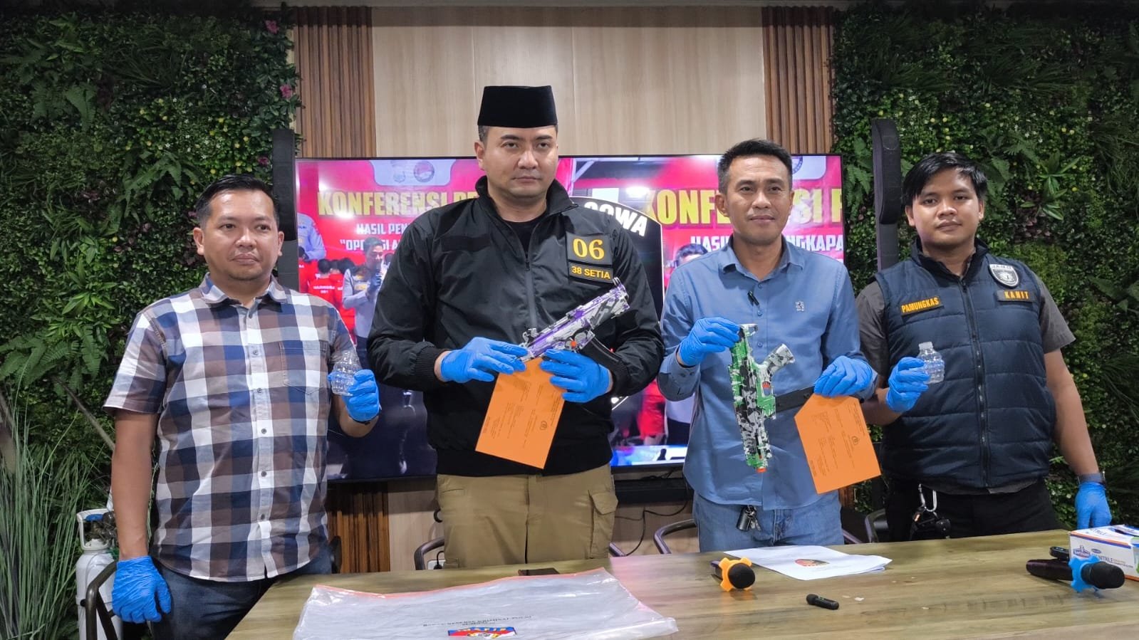 Sementara kedua pelaku yang sudah berusia dewasa sudah diamankan di Polres Gowa. Termasuk dua senjata mainan beserta tempat peluru yang digunakan pelaku melukai korban juga telah disita polisi.