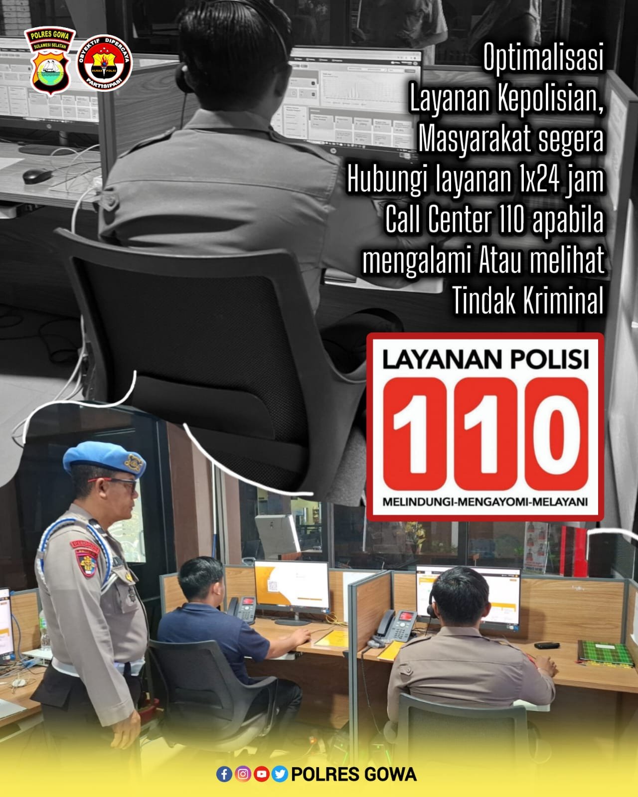 GOWA | FAJARINDONESIANEWS.ID-Dalam upaya meningkatkan pelayanan kepada masyarakat serta menjaga situasi keamanan dan ketertiban tetap kondusif, Polres Gowa terus mengoptimalkan layanan kepolisian melalui Call Center 110 yang siap melayani masyarakat selama 1×24 jam, Jum’at (3/4/2026).
