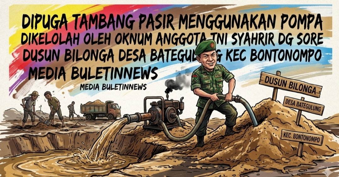 GOWA|FAJARINDONESIANEWS.ID – Keterlibatan oknum aparat dalam bisnis pertambangan liar kembali terungkap. Kali ini perhatian publik mengarah pada seseorang bernama Syahrir Dg Sore, yang diduga kuat merupakan anggota TNI, namun diduga terlibat aktif sebagai pengelola tambang pasir ilegal. Lokasi penambangan yang diduga tidak memiliki izin resmi ini berada di Dusun Bilonga, Desa Bategulung, Kecamatan Bontonompo, Kabupaten Gowa.
