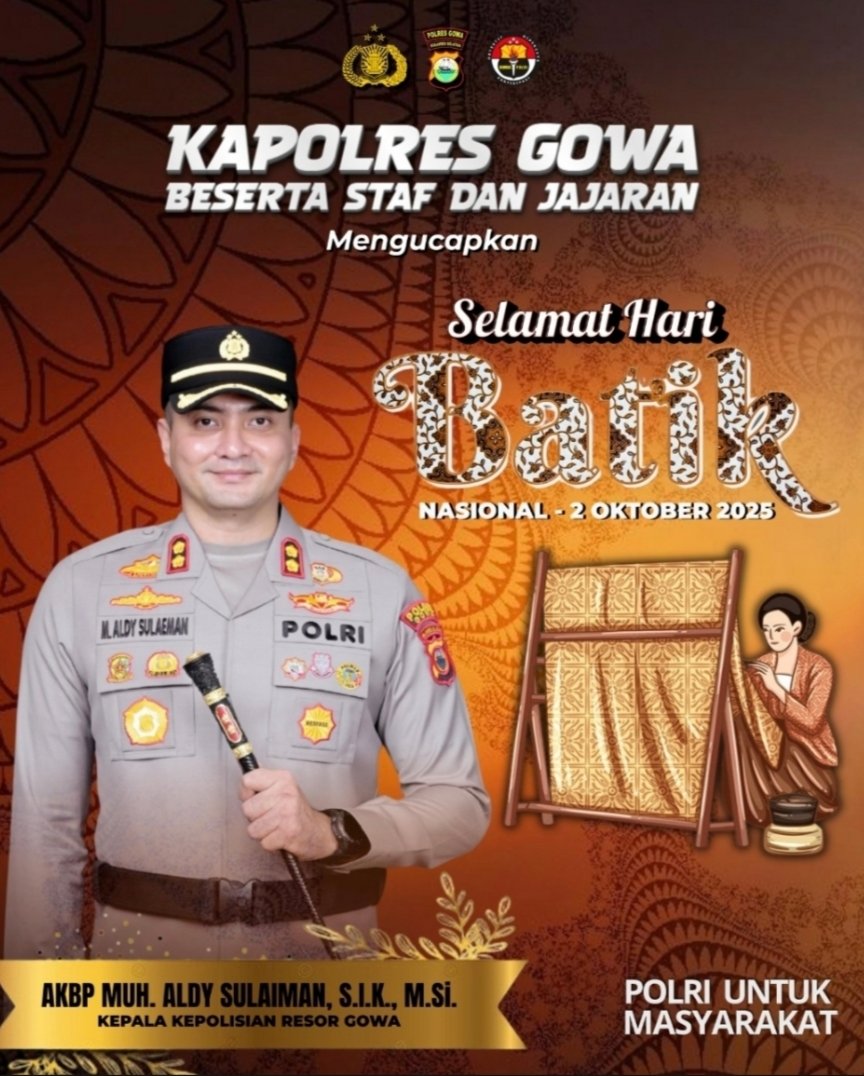 GOWA | FAJARINDONESIANEWS.ID-Kapolres Gowa AKBP Muhammad Aldy Sulaiman, S.I.K., M.Si., beserta seluruh staf dan jajaran Polres Gowa menyampaikan ucapan Selamat Hari Batik Nasional kepada seluruh masya...