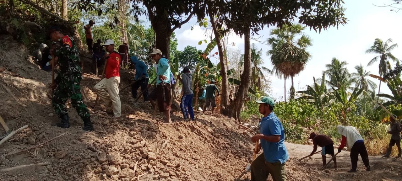 SINJAI, Sul-Sel. Fajarindonesianews.id- Babinsa Desa Songing Koramil 05/Sinjai Selatan Dim 1424/Sinjai Kopda Akmal bersama warga melaksanakan kerja bakti pembersihan jalan tani di Dusun Balimengko Des...