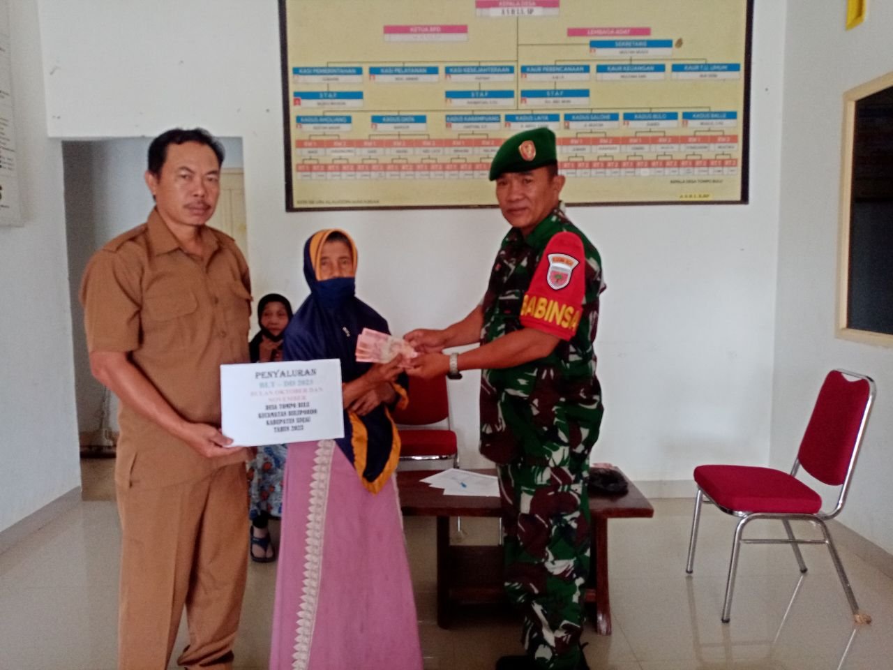 SINJAI, Sul-Sel. Fajarindonesianews.id- Babinsa Desa Tompobulu Koramil 01/Sinjai Utara Dim 1424/Sinjai Sertu Basri. M bersama Kepala Desa melaksanakan kegiatan penyaluran BLT-DD tahun 2023 kepada 28 o...