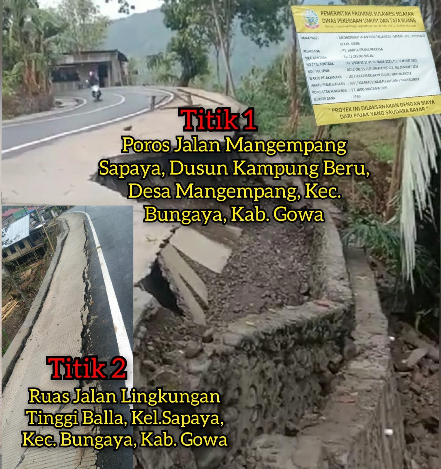GOWA, Sul-Sel. Fajarindonesianews.id- Proyek anggaran milyaran yang di jalan mangempang sapaya, Dusun Kampung Beru, Desa Mangempang, Kecamatan Bungaya, Kabupaten Gowa, Sulawesi Selatan, Rubuh akibat h...