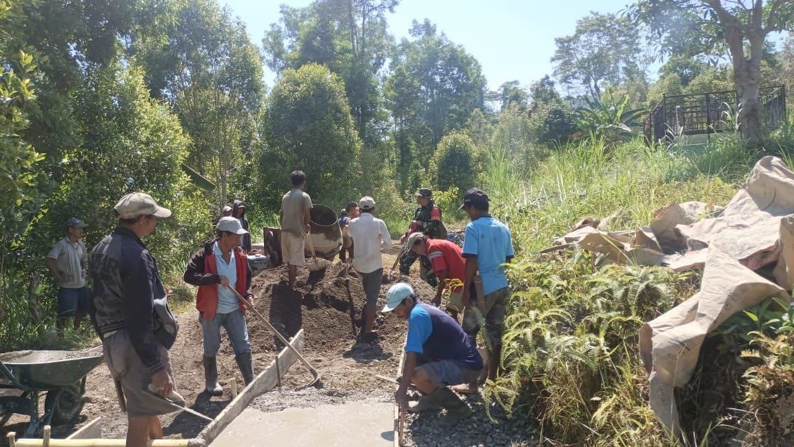 SINJAI, Sul-Sel. Fajarindonesianews.id- Babinsa Desa Saotengah Koramil 05/Sinjai Selatan dan Tellulimpoe Dim 1424/Sinjai Serka Muh Fahran bersama masyarakat melaksanakan kerja bakti pengecoran jalan t...
